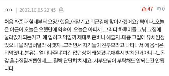 | 황혼육아 시키는 남편동생이 제 남편까지 육아를 시킵니다 [네이트판] (0) | 2023.10.15 |