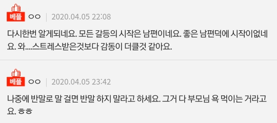 요번은 잘 끝났고 시아주버니가 아버지한텐 절대복종인 사람이라 앞으론 딱히 뭐 없을거 같습니다. 그 뒤 설엔 다들 바쁘다고 밖에서 밥 한끼 했는데 되도록 집에서 뭐 해먹는 자리 안 만들려고 그러시는 것도 같았구요...