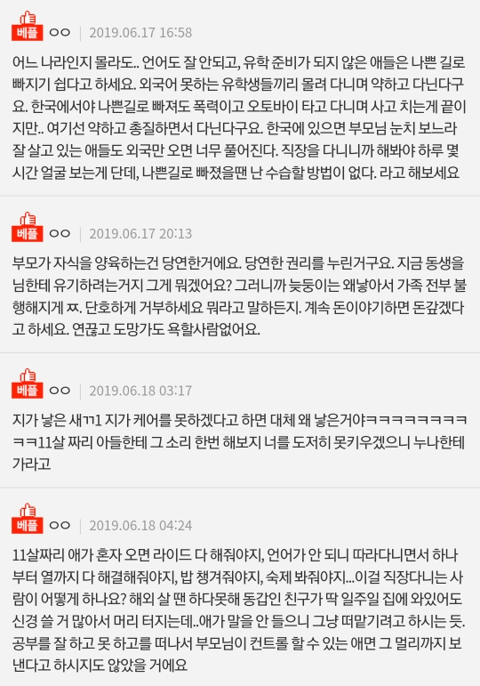대학도 보내주고 우리가 거기에서 자리를 잡을수있도록 금전적인 도움을 줬으니 우리의 말을 따라라동생은 원래 순하고 잘 할거다 하면서 아빠는 성선설을 믿으신다는 전혀 도움안되는 말만 계속 ㅠ..